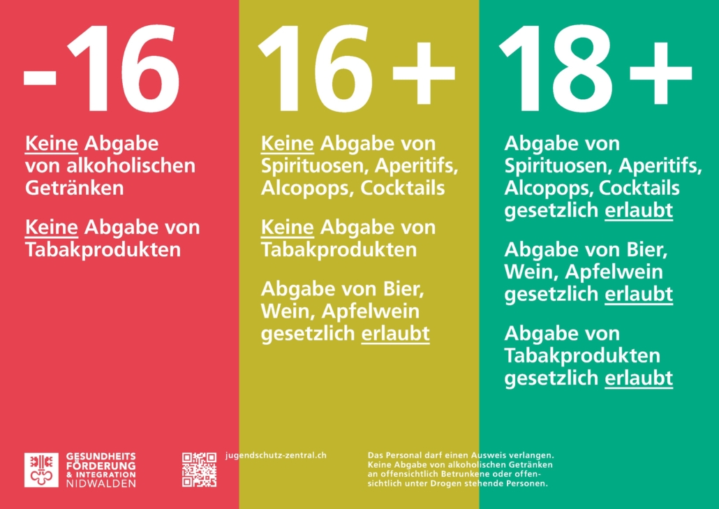 Hinweisschild (A4) zur gesetzliche Alkohol- und Tabakabgabe an Jugendliche und Junge Erwachsene.